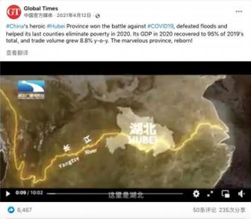 此视频由湖北省委宣传部门拍摄制作 ,委托环球时报在Facebook 、 Twitter、YouTube这3个海外社交媒体账号发布和推广。